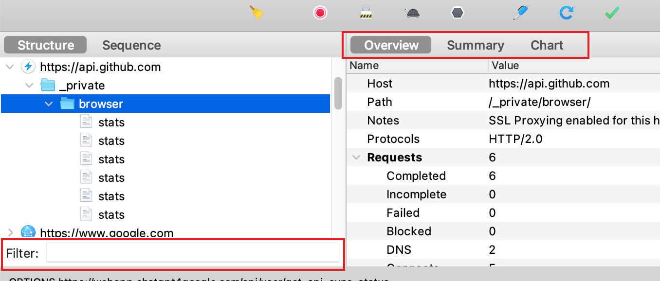 常用功能:域名框底部存在filter,用于对域名进行过滤